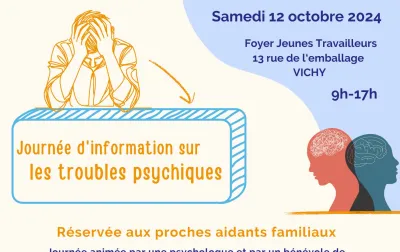 - Samedi 13 Décembre 2025 de 9h à 17h- Journée d'information sur les troubles psychiques à Vichy- Sur inscription- Plus d'informations