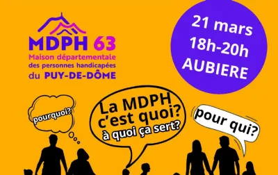 Présentation de la MDPH du Puy de Dôme par Sandrine Lacquit, directrice et Barbara Leroux, responsable accueil et communication. La conférence est organisée par l'Association des Malades et Handicapés (AMH) Entrée libre