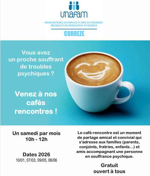 Notre café-renconte est ouvert à nos adhérents mais également à toute personne accompagnant (de près ou de loin) une personne souffrant de troubles psychiques.