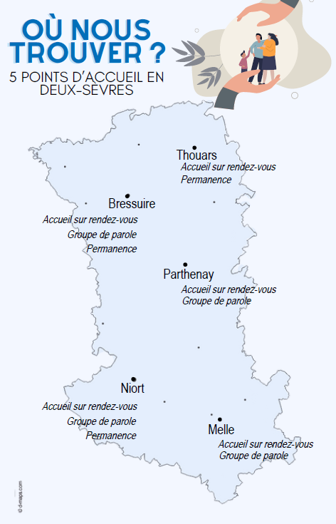 L'Unafam 79 accueille les familles à Niort, Melle, Parthenay, Bressuire et Thouars. Contactez nos permanences téléphoniques :