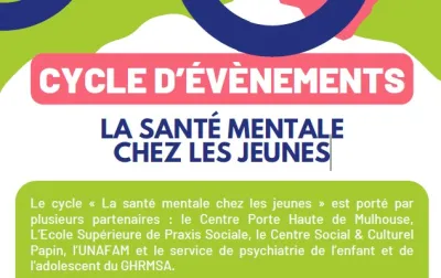 Dans une période où l'on parle beaucoup de la santé mentale des jeunes; il est proposé sur Mulhouse un cycle de 4 évènements ouverts aux professionnels ainsi qu'au grand public. L'UNAFAM du Haut-Rhin s'est associé à ses évènements. Le programme est disponible dans le fichier ci-dessous ainsi que les...