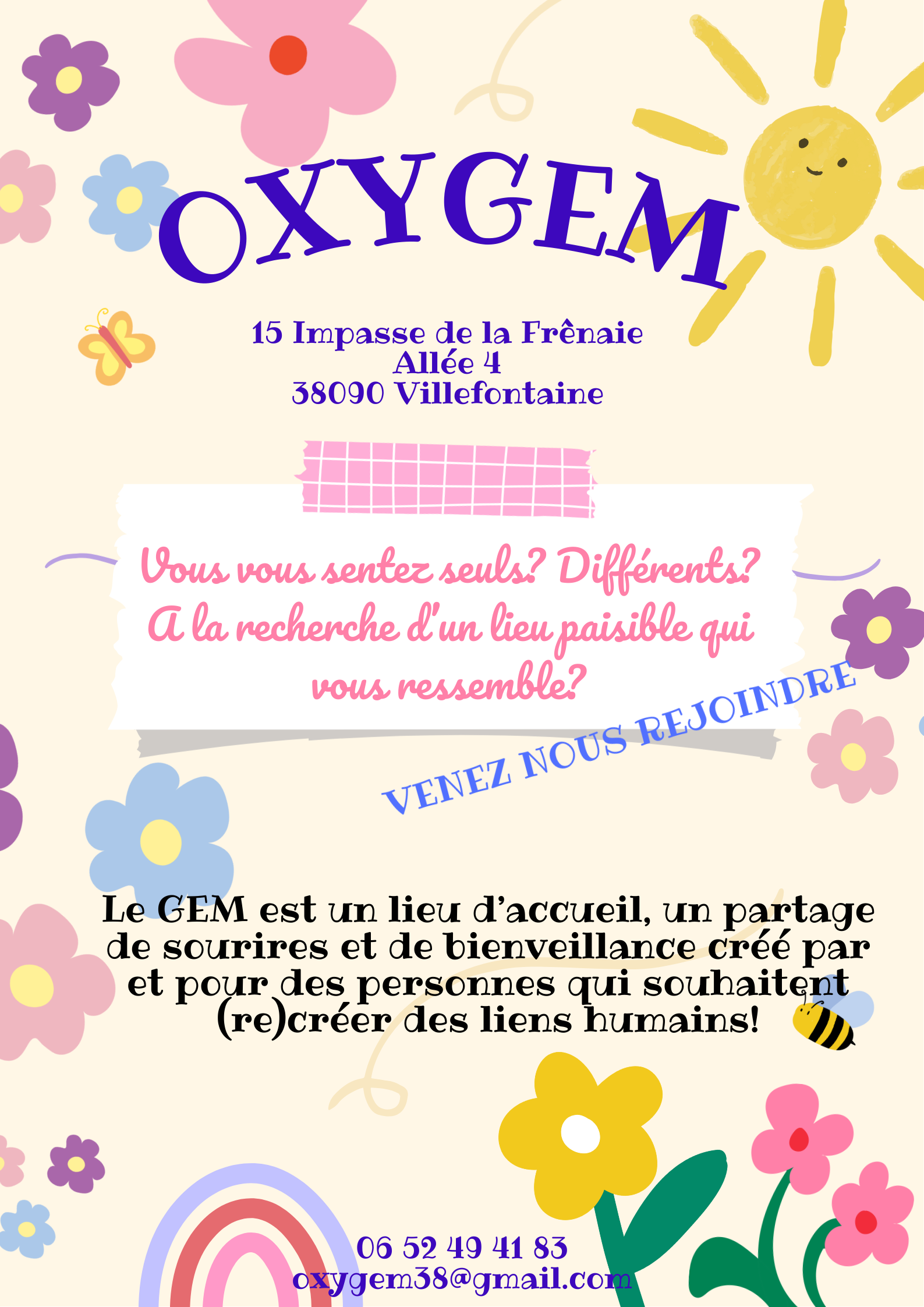 Flyer de présentation ci-dessous - GEM Oxygem, 15, impasse de la Frenaie, allée 4 - 38090 VILLEFONTAINE, Tel 09 80 97 46 42 ou 07 81 17 30 94 / 07 68 04 30 43 - oxygem38