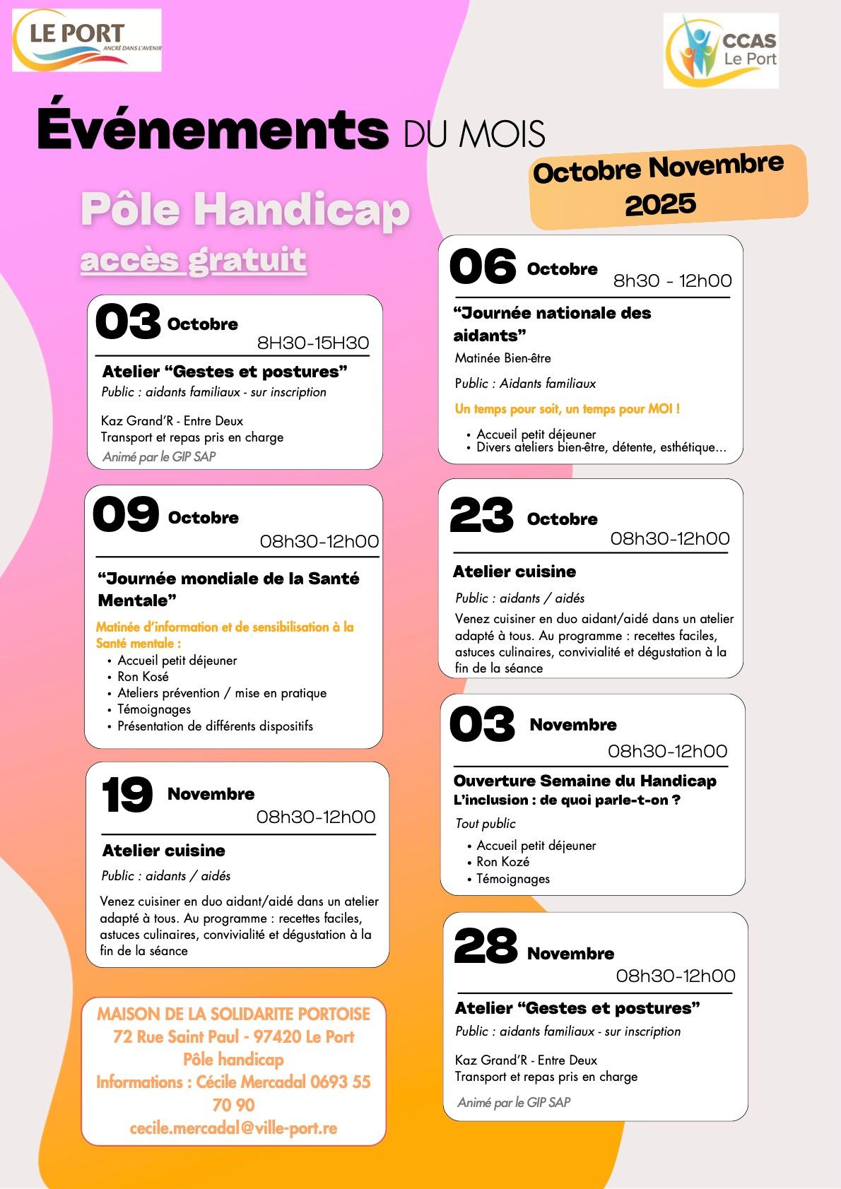 Infos et inscription : Pôle Handicap- Cécile Mercadal