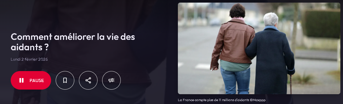 Nous partageons avec vous une émission de France Inter, disponible en podcast depuis le lundi 2 février, intitulée "Comment améliorer la vie des aidants ?".