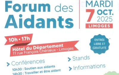 L'UNAFAM 87 sera présent au forum des Aidants le Mardi 7 octobre 2025 de 10h à 17h à l'Hôtel du Département (11 rue François Chénieux) à Limoges. Au programme deux conférences : 10h30 : "Soutien aux aidants" 14h30 : "travailler et être aidant"