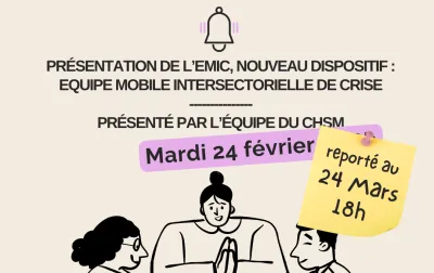 - Mardi 24 mars 2026 - Réunion d'information présentation de l'EMIC, nouveau dispositif de 18h à 20h siège UNAFAM Clermont sur inscription - Plus d'information