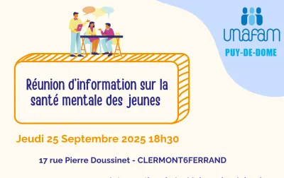 Le 25 septembre de 18h30 à 20 h, la maison des ados 63 animera la réunion d'information sur la santé mentale des jeunes et abordera les problèmes d'adolescence, la période des changements, la santé mentale, les pistes d'orientation.
