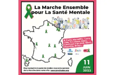 - Dimanche 11 juin, La Marche Ensemble pour La Santé Mentale : à l’initiative du Psychodon, rejoint par l’Unafam, Santé Mentale France et avec Argos 2001 et Le CNIGEM, La Marche Ensemble pour la Santé Mentale est un appel à la mobilisation citoyenne. Usagers en santé mentale, familles et aidants, professionnels du soin et de l’accompagnement, associations, bénévoles… Rejoignons-nous le 11 juin !