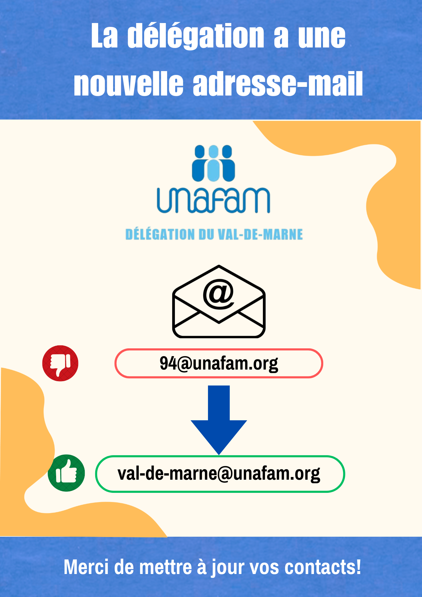 Nous vous informons que la délégation Unafam du Val-de-Marne dispose désormais d'une nouvelle adresse e-mail.