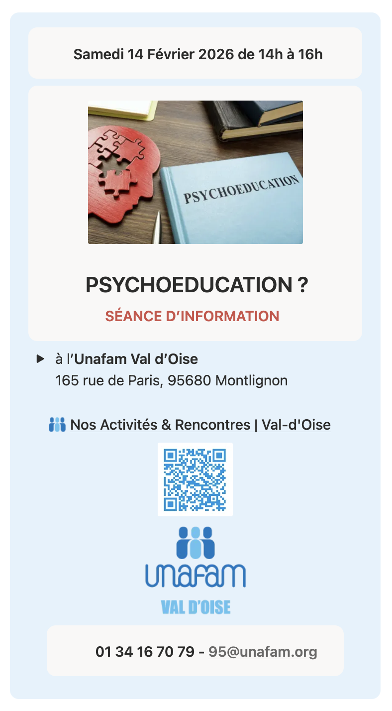 Merci de vous inscrire : 01 34 16 70 79 - 95unafam [dot] org