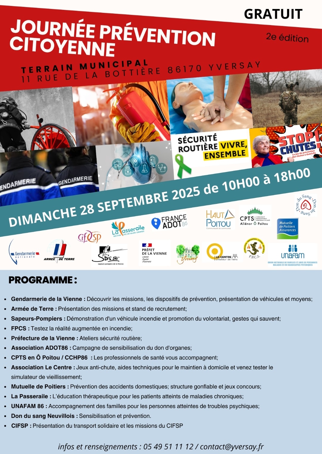 Ce dimanche 28 septembre de 10h à 18h, rendez-vous au Terrain municipal d'Yversay pour la Journée Prévention Citoyenne !