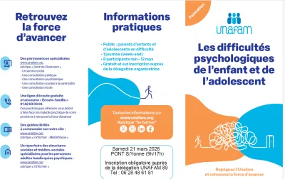 Le 21 Mars 2026 à Pont Sur Yonne Journée d'information sur les difficultés psychologiques de l'enfant et de l'adolescent